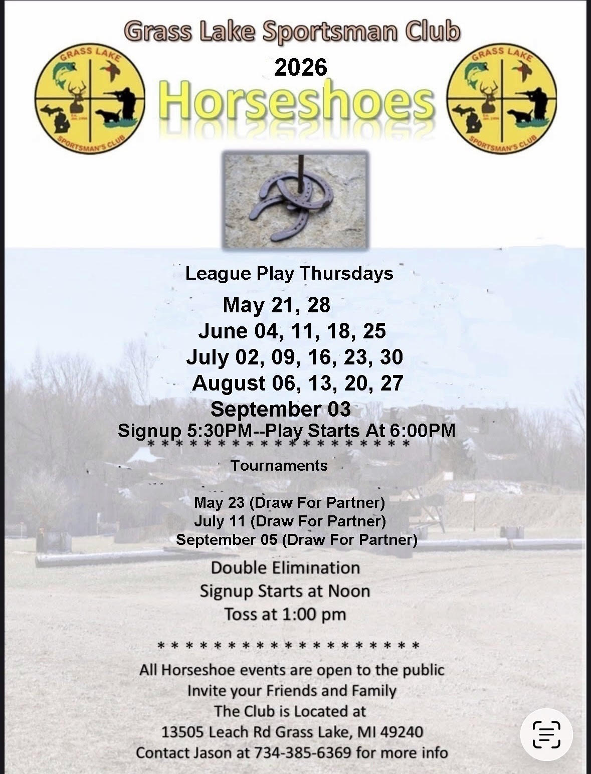 Come enjoy a game of horsehoes. We have a set of 5 pits lined up. You can play against a partner, solo, or in a tournament. Located diagonal from our pavillion, you can enjoy the show or simply wait your turn.